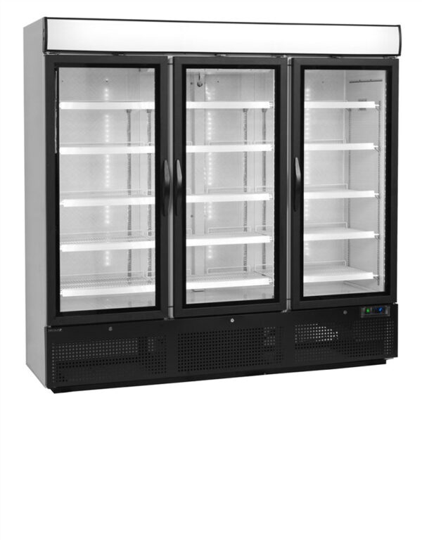 Displaykøleskab – 1784 liter – NC7500G Imponerende lagerplads Lystop med LED-lys Indvendigt vertikalt LED-lys Selvlukkende glasdøre Ventileret køling Justerbare hylder Matchende frysermodel findes Tekniske Specifikationer Mål og indhold Temperatur-interva